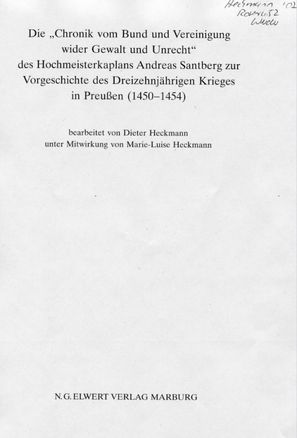 Die "Chronik vom Bund und Vereinigung wider Gewalt und Unrecht" des Hochmeisterkaplans Andreas Santberg zur Vorgeschichte des dreizehnjährigen Krieges in Preußen (1450 - 1454)